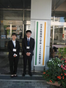 2025年9月16日~18日に愛媛大学樽味キャンパスにて日本生物環境工学会2025年愛媛大会が開催されました。当研究室からはM2の加藤、市古の2名が研究発表を行いました。